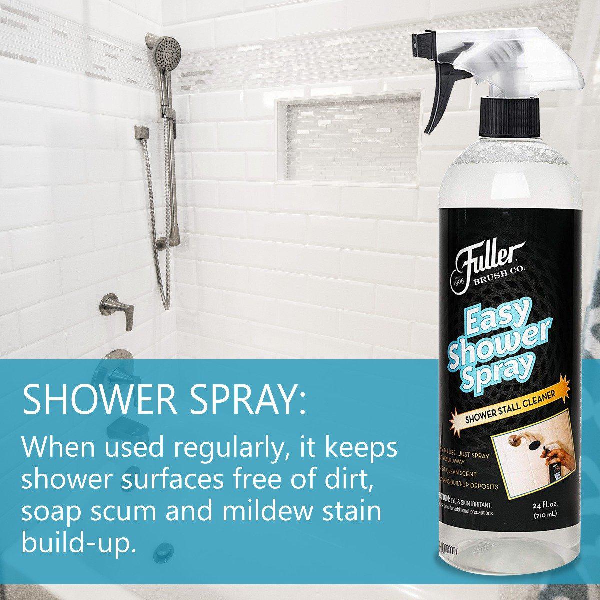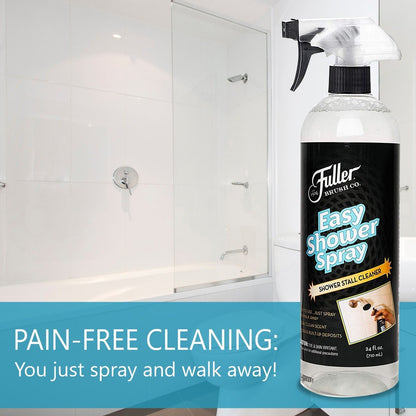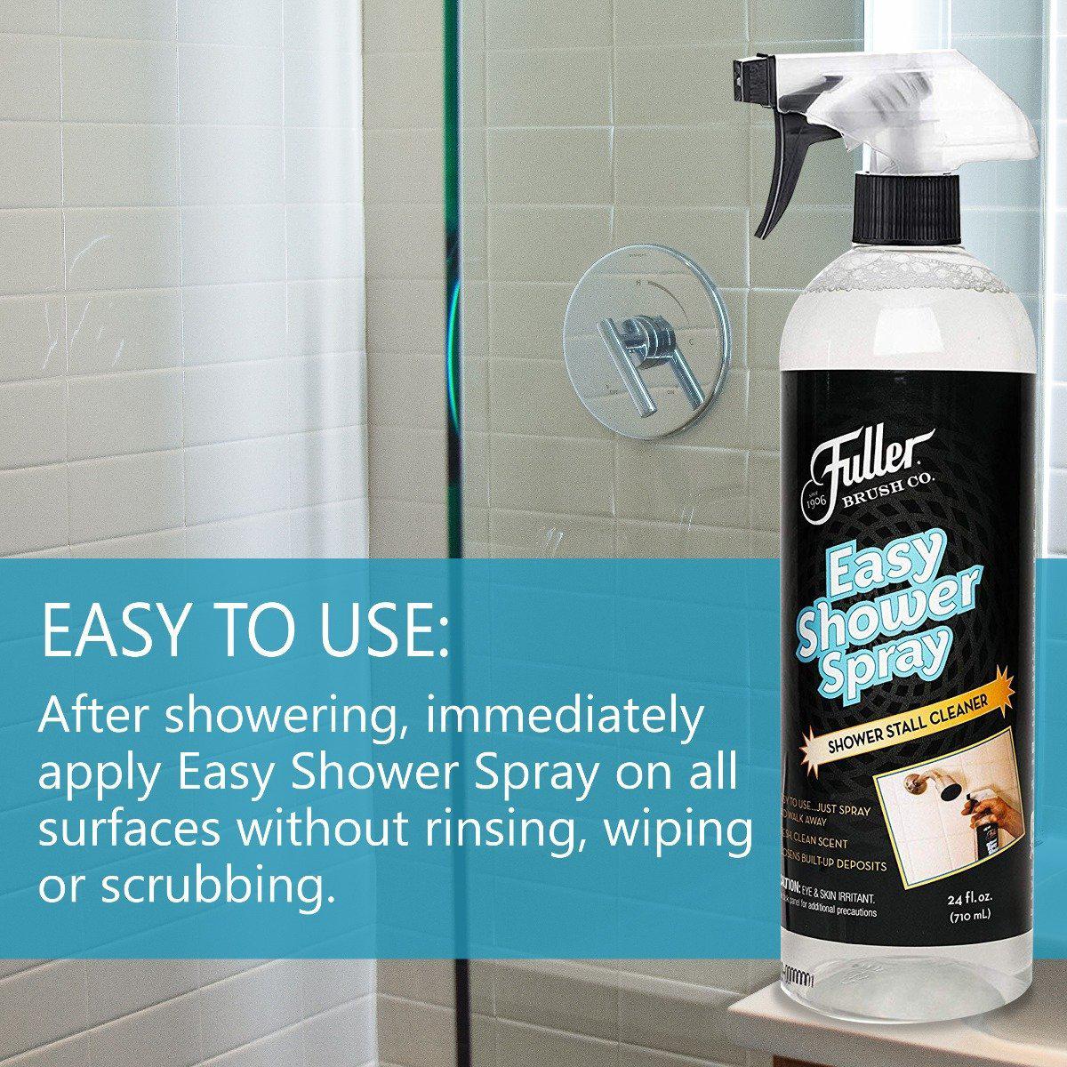 The easy way to step into a clean, fresh shower every day! Keeps shower surfaces free of dirt, soap scum and water stain build-up when used regularly. Easy to use – just spray and walk away. No rinsing, wiping or scrubbing needed. Already have hard water and soap build-up? – with regular use, Easy Shower Spray will loosen built-up deposits. Use on all shower surfaces: walls, fixtures, curtains, doors and floors. Contains no harsh chemicals. Leaves a fresh, clean scent. Originally called FullGuard 24 fl. oz. Made in USA.