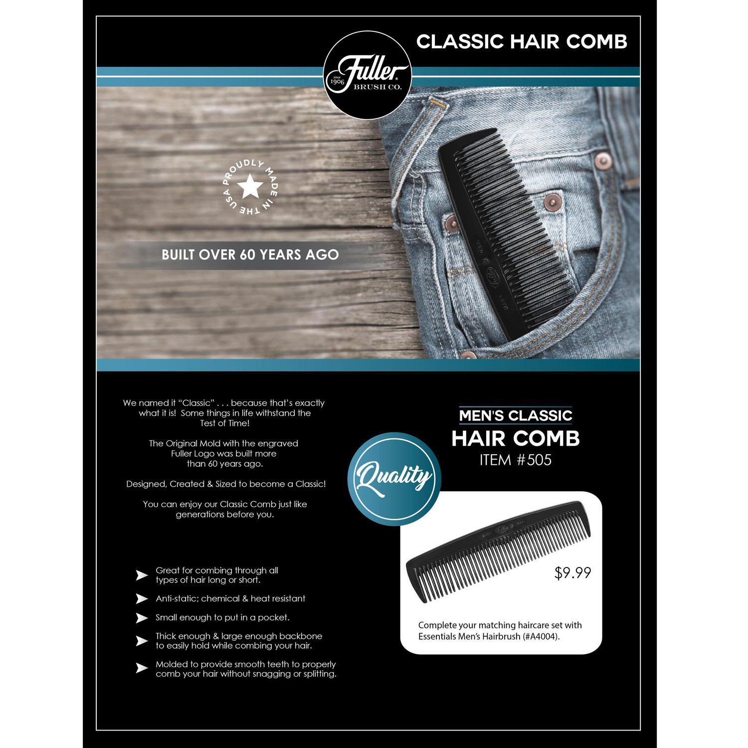 We named it “Classic” . . . because that’s exactly what it is! Some things in life withstand the Test of Time! The Original Mold with the engraved Fuller Logo was built more than 60 years ago. Designed, Created & Sized to become a Classic! You can enjoy our Classic Comb just like generations before you. 5” in length it fits easily in a pocket. Thick enough and large enough backbone to easily hold while combing your hair. Goes through all types of hair, long or short. Molded to provide smooth teeth to properly comb your hair without snagging or splitting. 1 1/2” center width; 7/8” teeth. Made in the USA.