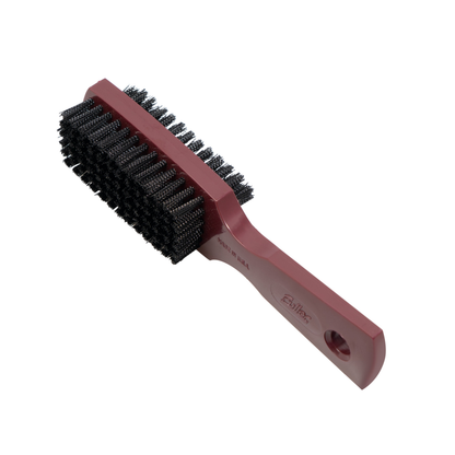 Double-sided versatility nabs the dirt in hard-to-get places. Contains two lengths of durable nylon bristles. Three rows of short nylon bristles scrub nails, cuticles and hands so that they look their best. Six rows of longer bristles on the other side brush away dry, chapped skin from heels and elbows so that they feel silky and smooth. Can be used wet or dry. Durable plastic block with handle is easy to hold & has a convenient hang-up hole. 6” overall length. New Mulberry color with black bristles.