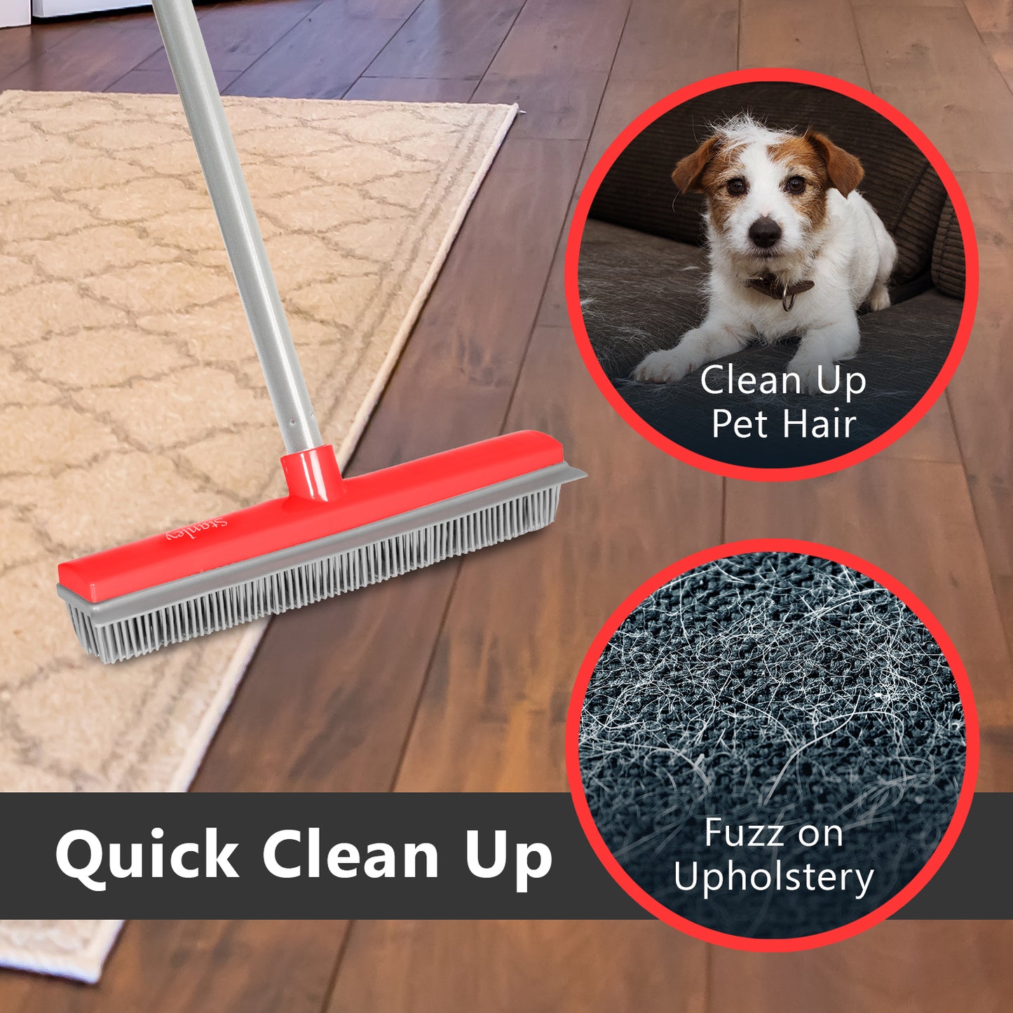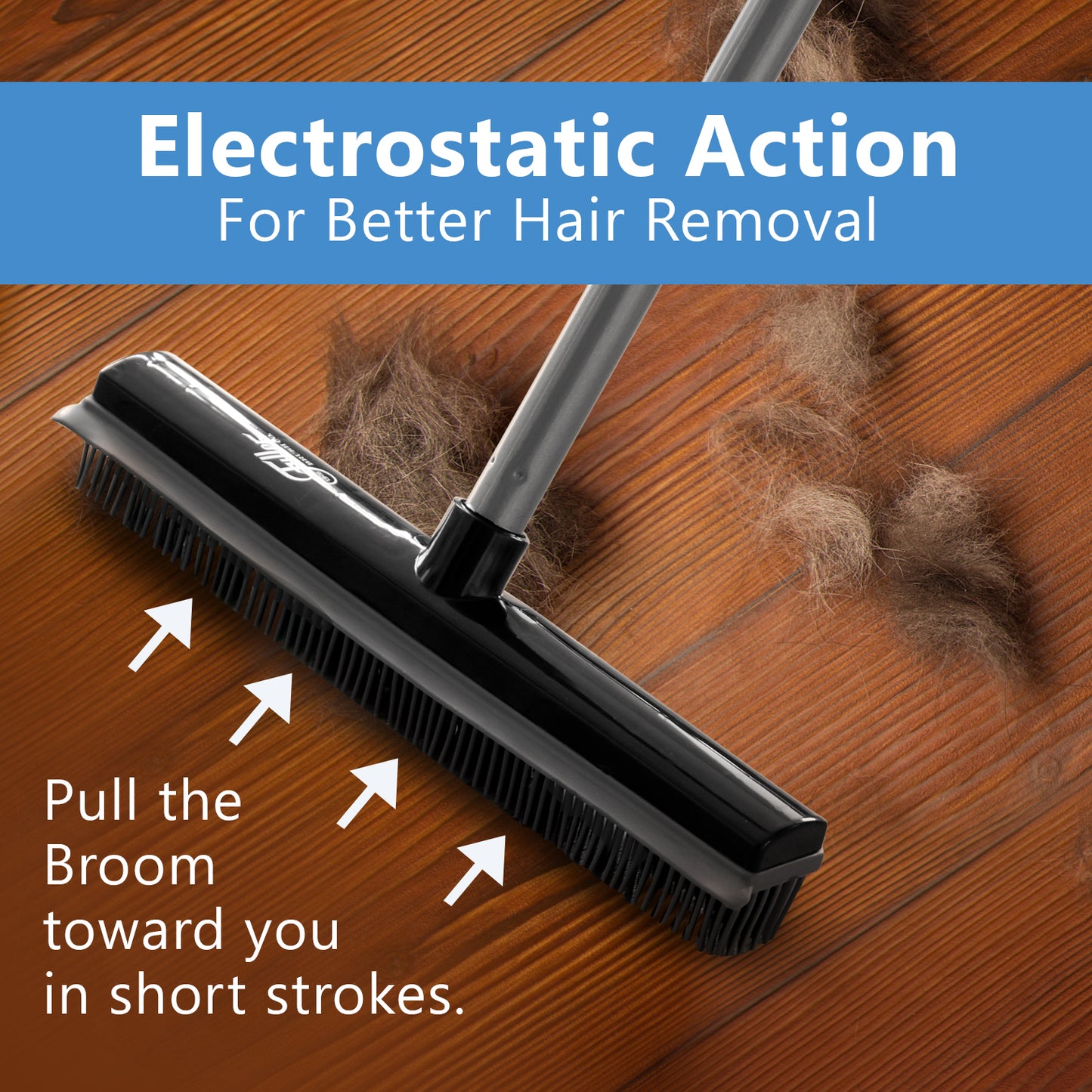 Our Fuller Brush Rubber Broom efficiently removes hair, lint, fuzz, dust bunnies and dirt particles from carpets, floors, ceramic tile, stairs, upholstery and more. Unlike other brooms that can cause hair to flyaway,